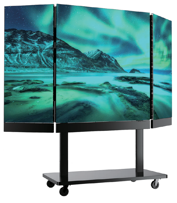 Featuring direct view LED technology, just like our full-size video walls, the Virtual Video Poster delivers stunning visuals in a compact 2' x 6' format mounted on a mobile base for easy placement. Each poster boasts a built-in controller for playing any type of media file and connects seamlessly to external devices. Plus, you can combine multiple posters to create a truly massive video wall, scaling up to 6 posters for a 1.9mm pixel pitch display or 8 posters for a 2.5mm option.